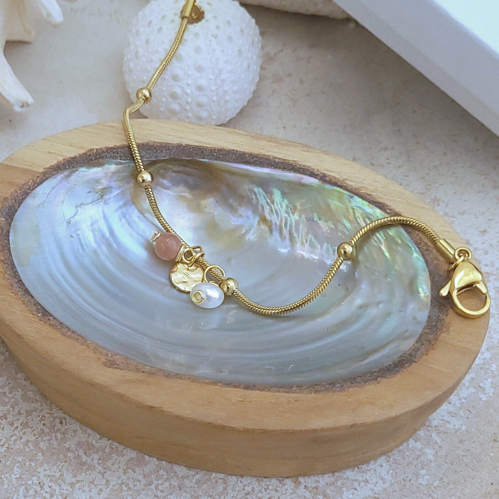 Stainless steel bracelet with moonstone and freshwater pearl