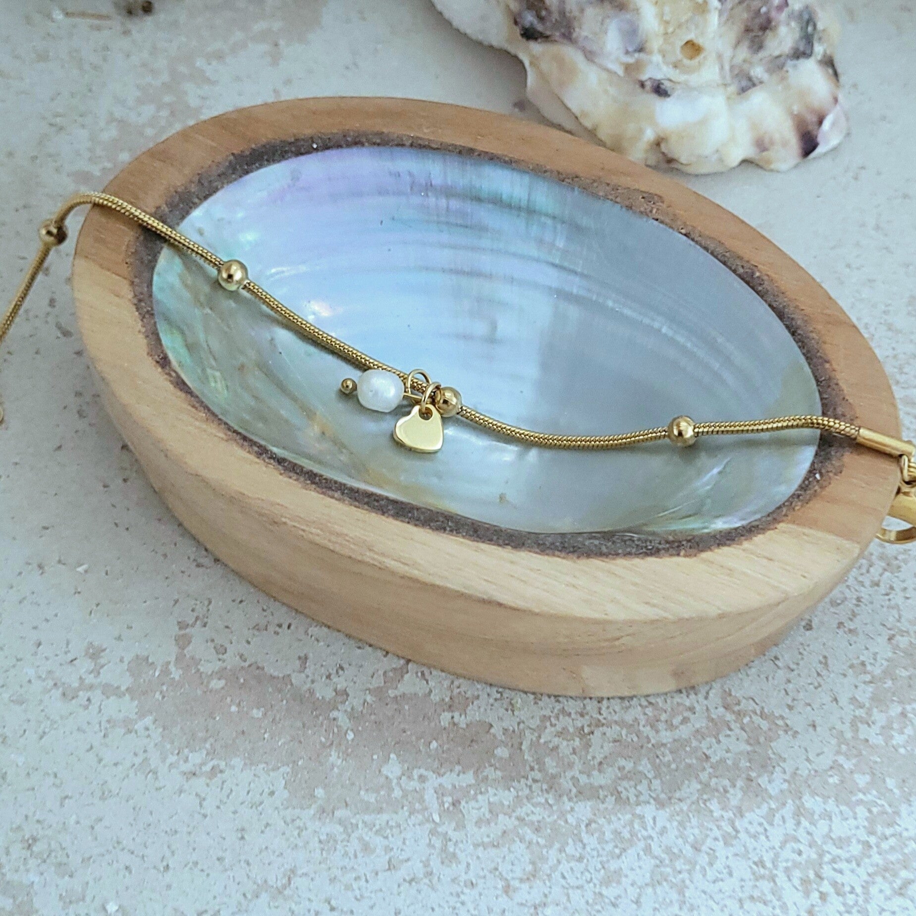 Stainless steel bracelet with a stainless steel charm and freshwater pearl